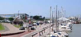 Vom Bensersieler Hafen sticht die Fähre nach