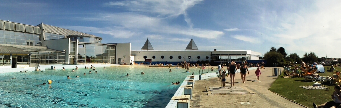 Meerwasserwellenbad, eine Sonnentherme. Vor und hinterm